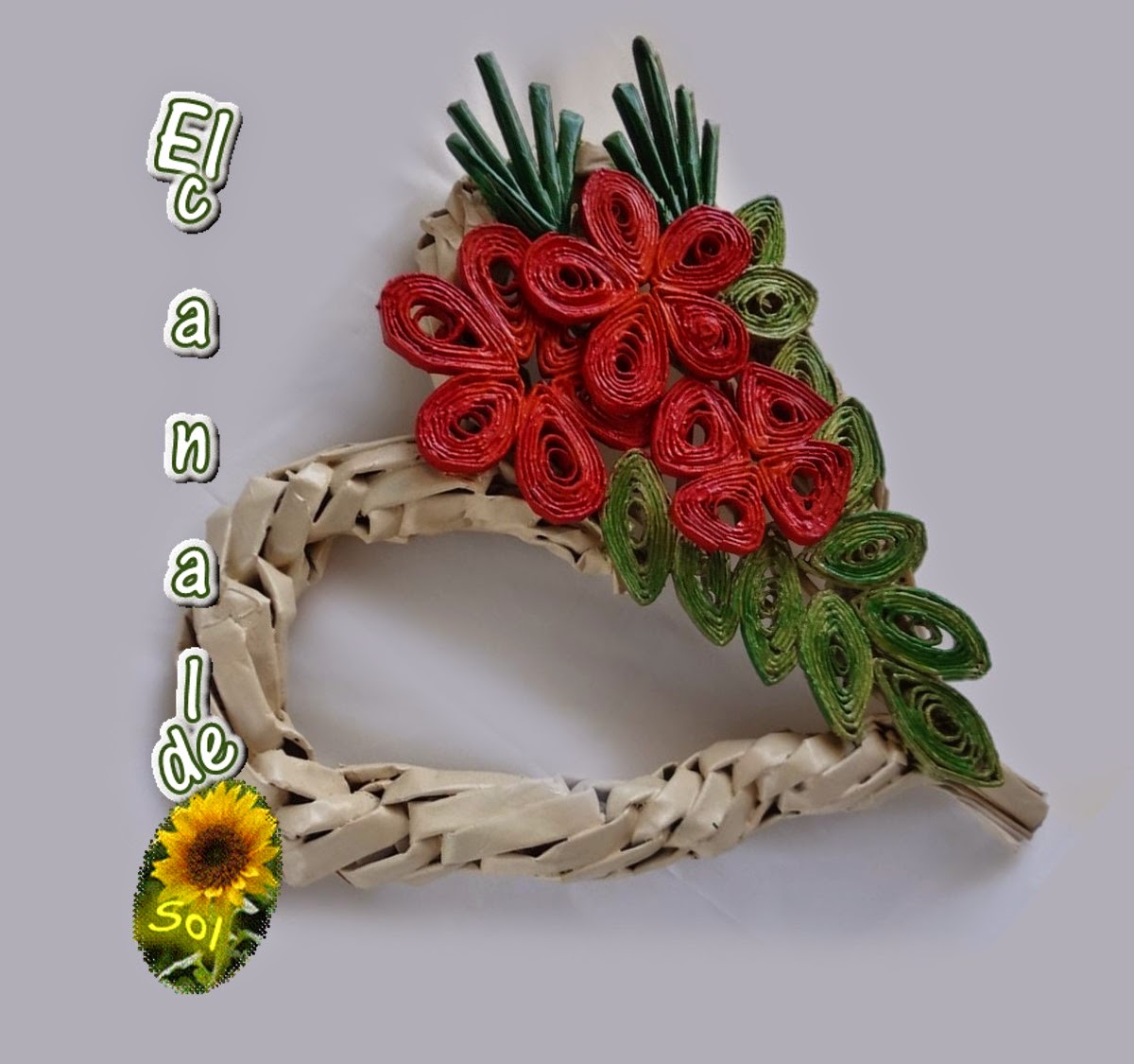 CORAZON DE PAPEL con tejido espiga, hecho de papel periódico